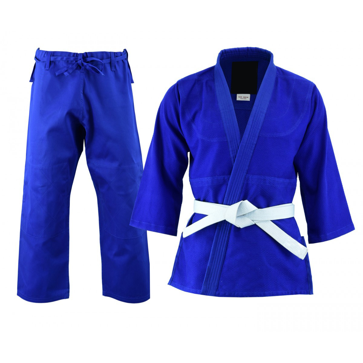 Trousers have an elastic/tie waist for precise fit