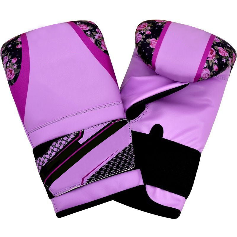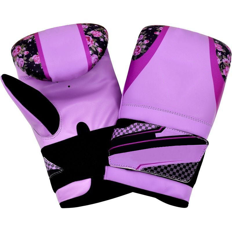 Feminine and functional bag gloves featuring a bold floral print in a vibrant purple hue. Reinforced palm and fingers provide excellent grip and protection for a variety of training applications. Breathable mesh back keeps hands cool and comfortable.
