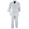Precision woven, cotton weave to minimize suit shrinkage and prolong durability. Jacket includes reinforced seams and double stitching where needed most, as well as a reassuringly thick collar that’s difficult to grab. Both shoulders have logo embroidery. Reinforced knees for longevity when on the mat. Trousers have an elastic/tie waistband for precise fit. Plain, minimalistic, design allowing you to personalize your own suit. Woven logo on the lapel and woven label logo on the top of the left leg. Belt included. 100% cotton. 450g.